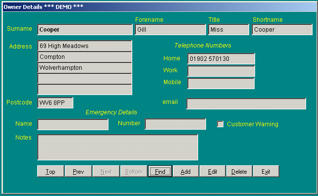 Owner Input Screen